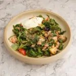 Light Mediterranean salad with tuna, fregola, vegetables, and whipped ricotta