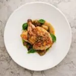Ми обсмажуємо фермерське курча вільного вигулу до золотої скоринки — щоб кожен шматочок хрумтів і танув водночас. Подаємо з молодою картоплею, зеленим горошком та соусом із в’ялених томатів і каперсів, який додає легкого середземноморського акценту. Це страва, що пахне теплом і затишком — коли час сповільнюється, а світ за вікном стає м’якшим.
